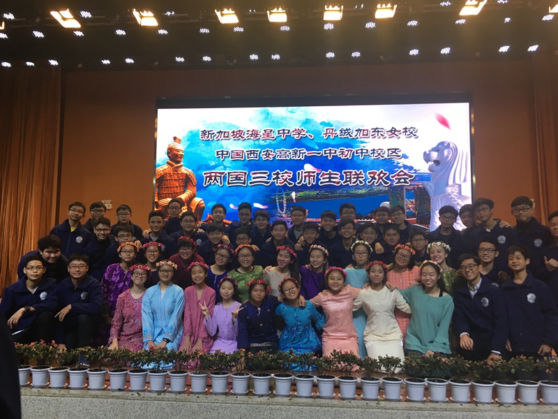 新加坡海星中学和丹绒加东女校我校与新加坡海星中学和丹绒加东女校自1999年即建立了姊妹学校关系,自2003年起,就开展了此项名为“知行长安”的文化浸濡活动,该活动主题旨在“使海外华人青少年亲眼目睹、亲身感受中华文化的博大精深、了解中国社会建设方面的巨大成就,达到学习中文、了解中国国情的目的”。新方两校每年会各派出30位左右修读华文的中二、中三学生来我校进行交流,他们希望通过在高新一中初中校区的学习和交流能进一步提升自身文化素养,较快提高华文知识。同时我校也会在次年的8月公派我校初一优秀师生回访新方两校,去感受这两所新加坡名校的“勤勉中勇”的优良学风和丰富多彩的CCA课堂辅助课程的创新性教学方式。