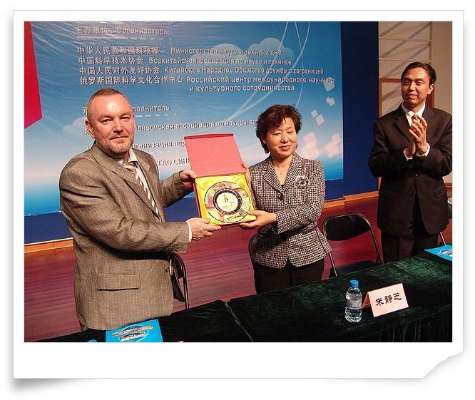 副省长朱静芝女士与俄罗斯代表团团长费德罗夫.亚历山大互赠礼物