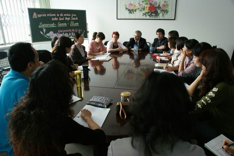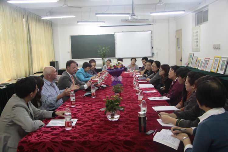 随后,带队老师还与我校的英语老师进行了深入的座谈,双方交流了语言教学及学习上的经验及体会,与会的老师们都获益匪浅。