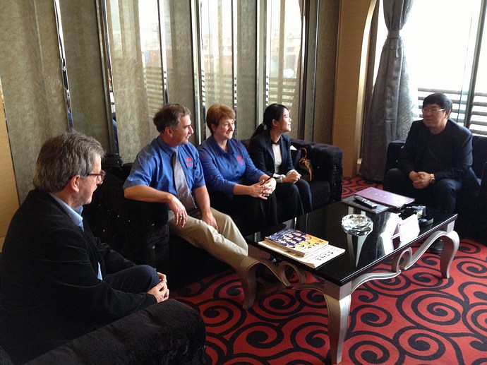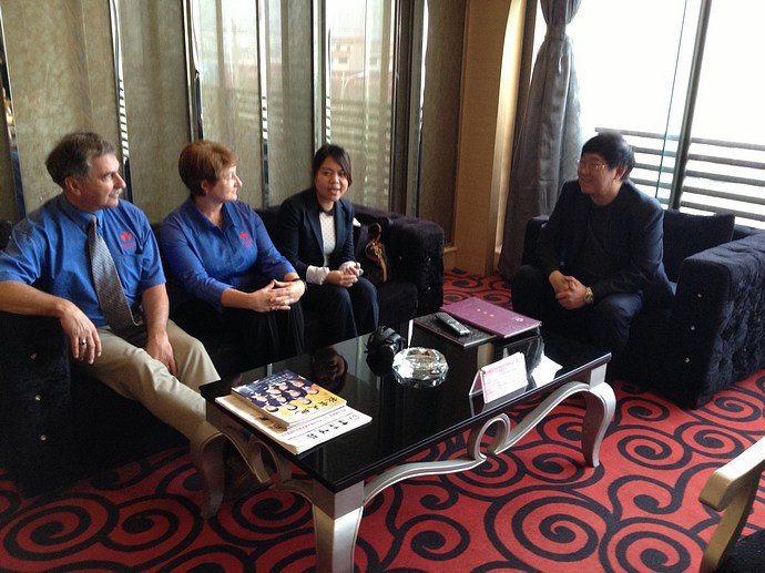 项目负责人丹·沃尔什先生一行4人到达我校后,我校王凤进校长热情地接待了来自加拿大的贵宾。欢迎宴上,王校长与沃尔什先生互相细致地了解中加两国中小学的学校发展和国际交流活动开展情况,并在“中国学生赴加留学适应度”、“加拿大中学中文课程开设情况”等多个方面进行了交流和探讨,并协商洽谈中加双方之间建立友好交流项目等事宜。