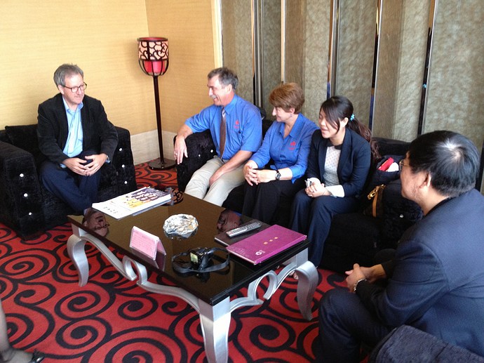我校王校长与来自加拿大的教育家们谈话也十分融洽 ,风趣幽默的话语经常引得加拿大友人们笑声不断。沃尔什先生当即表示极有兴趣与我校开展深入的交流合作,并会在未来近期与我校讨论交流项目的细节问题,促使双方的合作成型。双方的会谈也在温馨的气氛中结束。
