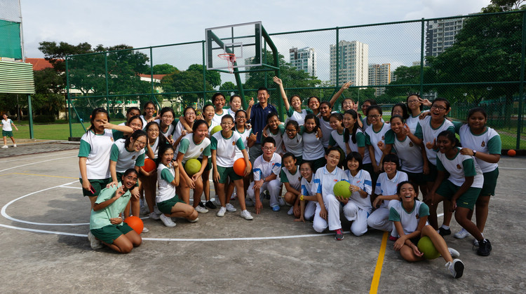 丹绒加东女校以音乐和体育为特色,我校师生与该校篮球队切磋技艺