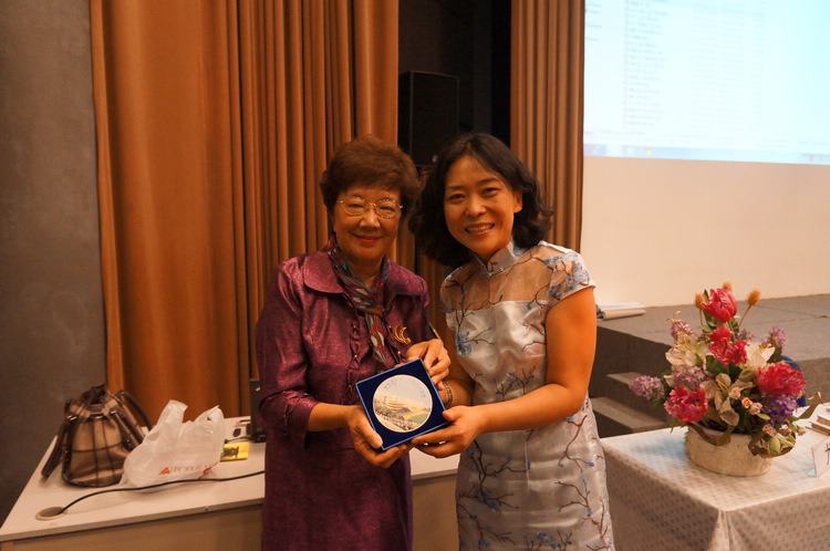 尤金女士与我校张小英副校长互赠礼物,作为纪念