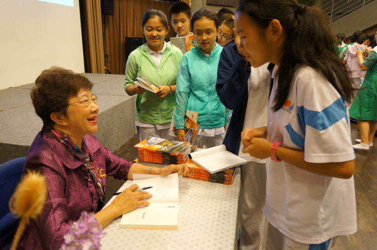 尤金女士对我校学生赞誉有加,并将亲笔签名的书赠予了学生们