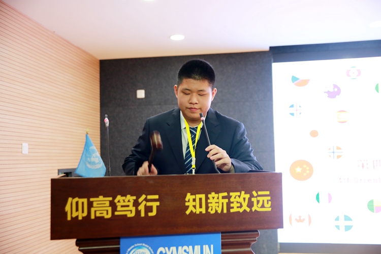 大会主席王培宇同学叩响法槌,宣告GMUN2017正式开幕