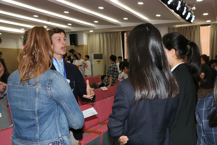 我校学生与美国布鲁克兰中学学生组成双代进行发言