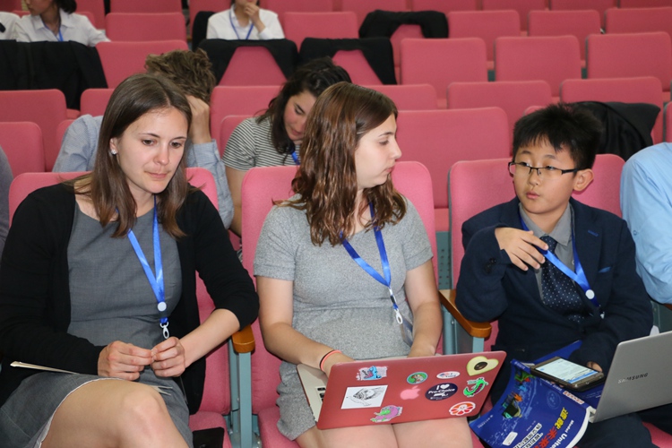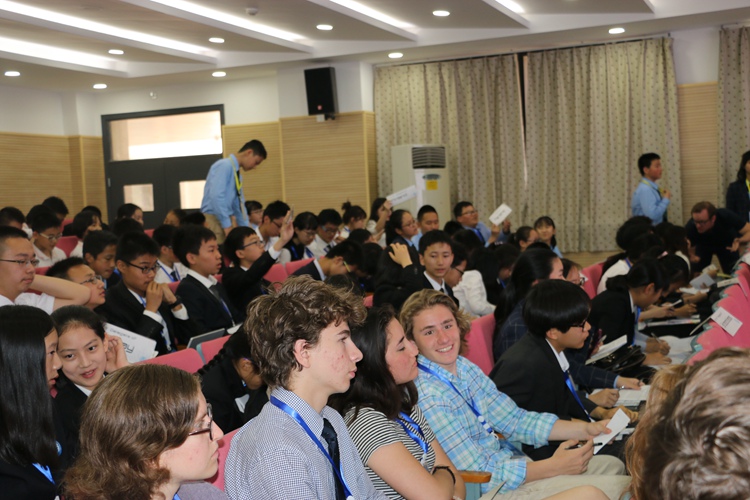 周六早上9点,开幕式隆重举行,高新一中初中校区王凤进校长、张小英副校长等学校领导,以及美国布鲁克兰中学Julia老师,西安高新国际学校Johnny、Randy老师出席了开幕式,王凤进校长发表了热情洋溢的讲话,欢迎布鲁克兰中学和高新国际学校的师生参加本次会议,并对所有参会学生寄予厚望,为他们感到骄傲,王校长的发言风趣幽默引得场下不时笑声四起。之后,8年级A1班的邱海天同学作为大会秘书长发表了主旨演讲,他先抑后扬,向所有模联人发出了不要只是满足于纸上谈兵,要从现在开始行动起来,改变自身,从而改变世界的号召,他的发言字字铿锵,发人深省,赢得了全场中外学生雷鸣般的掌声!随着主席王培宇同学的一声锤响,GMUN2017拉开了帷幕!