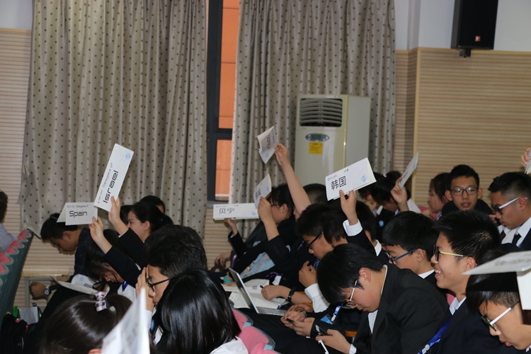 本次会议中,参会代表们模拟了联合国环境规划署UNEP的职能,讨论全球非法捕鲸问题。由于日本等国的肆意捕捞,全球鲸鱼濒临灭绝险境,而这群平均年仅14岁的模联社员们心中无不为这深海中的美丽生命所牵挂,他们想以稚嫩的肩膀扛起呼吁全世界国家放弃杀戮、拯救自然的重担。会上,同学们一个个自信满满,围绕各自国家的立场展开热烈讨论,既有激辩也有共识,既有分歧也有合作。第一个议程中,各国代表从商业捕鲸和科研捕鲸的区别、相关法律条款的完善、如何对依赖捕鲸及有捕鲸历史传统的国家进行帮扶等方面对议题展开了热烈充分的交流与商讨。会议的第二个议程时,主席下放了两个危机。场内代表们迅速提出动议讨论危机的解决措施,积极制定草案。代表们的镇定自若和冷静分析、迅速判断的能力在这里得到完美展现。每一位代表都全身心投入到了会议讨论当中,甚至周六下午第二个议程结束后代表们依旧在微信群上继续着激烈的讨论直到深夜。此次参会的除八年级社团成员外,还有部分七年级同学,他们或作为观察国积极参与会议,或作为志愿者为代表们提供帮助。别看年龄小经验少,但7年级小鲜肉们的英文水平并不逊色,都能紧跟议程提出自己的看法。