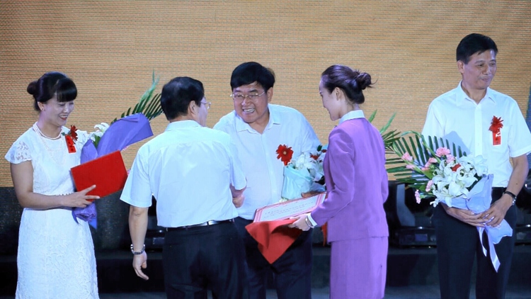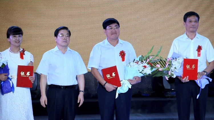 省市领导为荣获“杰出人物”称号的代表们颁奖