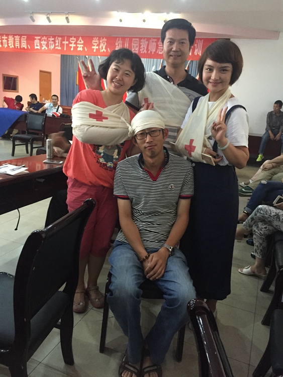 近年来,校园安全成为全社会关注的热点之一,紧急情况下实施正确、及时的施救可以避免二次创伤甚至挽救一个人的生命。但是急救技能的普遍缺乏,导致了不少悲剧的产生。为普及正确的急救技能 ,2016年5月25至27日,西安市教育局、西安市红十字会联合开展2016年中小学、幼儿园教师急救员培训。高新一中初中校区派体育老师:刘宝,生物老师:孟晶、 赵鹰、杨静,一行四人参加了培训。