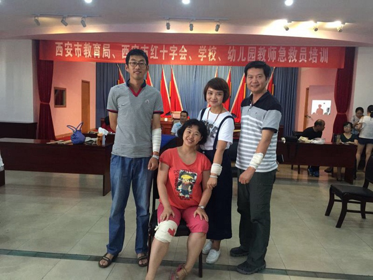 培训紧紧围绕心肺复苏、气道梗阻、创伤急救、常见急症、意外伤害突发事件处理等方面的知识、技能开展。老师讲解每个技能后,四位老师仔细钻研,认真、反复练习。在理论、实践操作考核中成绩均为优秀。特别是代表雁塔区在模拟现场应急救护演练中,对心跳呼吸骤停、脚部外伤和肠外溢等危急“患者”实施现场应急救护,操作规范、表现优异。