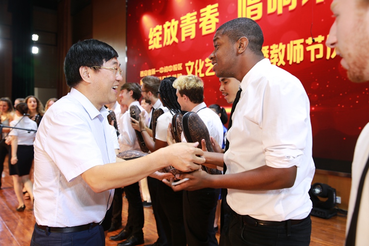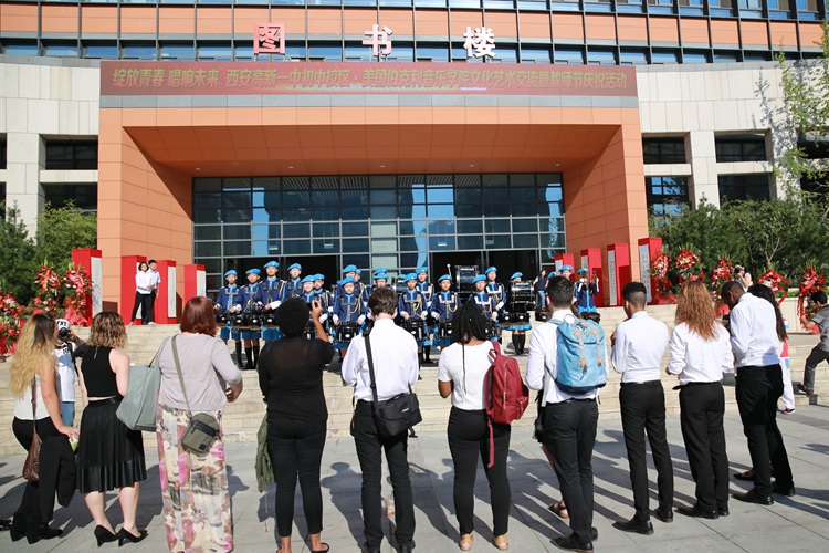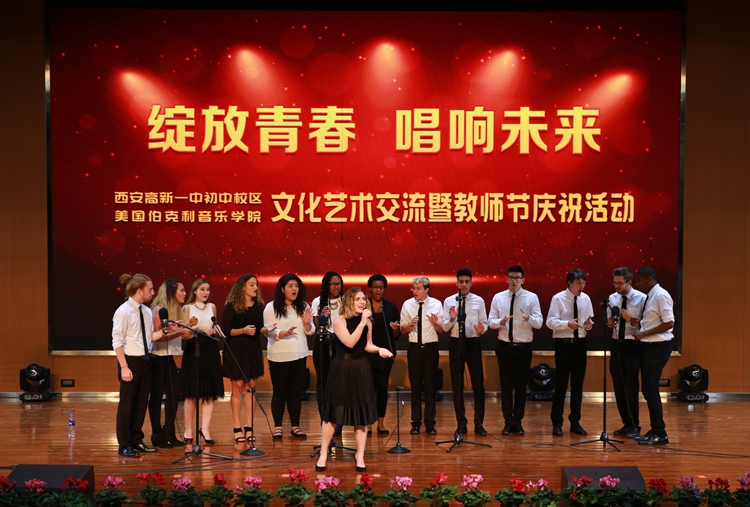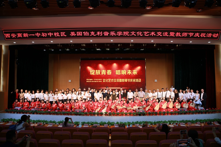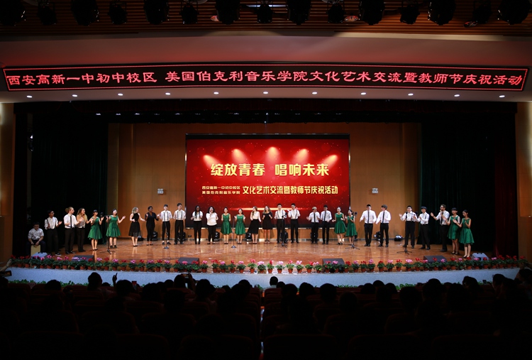9月10日是中国第32个教师节,当天上午9:40左右,西安高新一中初中与美国伯克利音乐学院同台庆祝中国教师节。据悉,此次文艺演出在手机网络直播平台上进行了全程直播,直播吸引了1万5千多人次的观众在线观看,并且参与互动。此次直播,可以说是高新一中初中进取、创新、敢为天下先的校园文化的又一次很好体现。