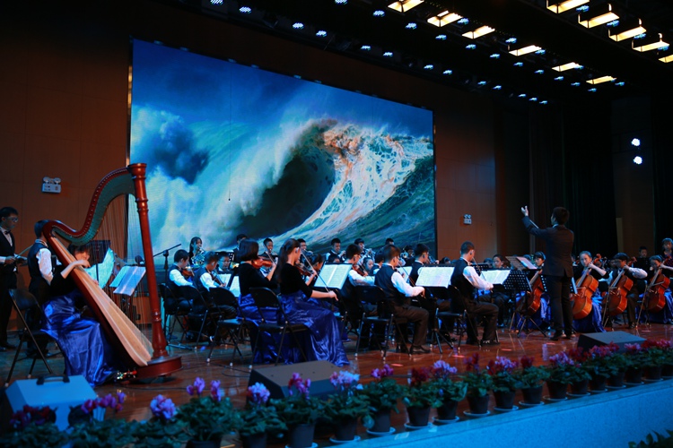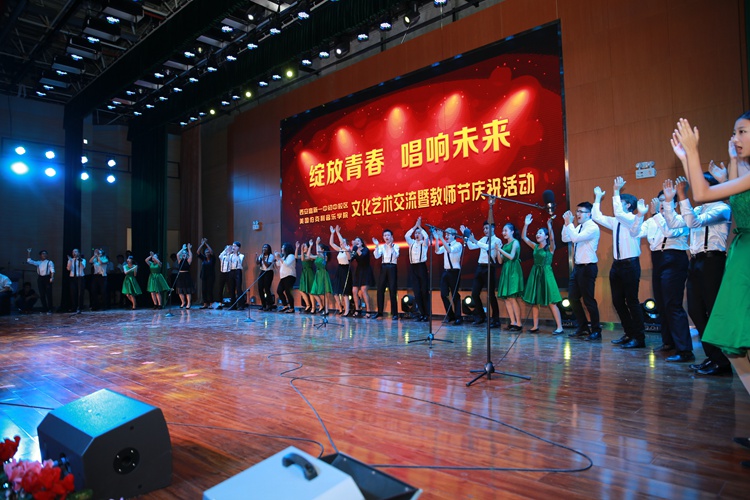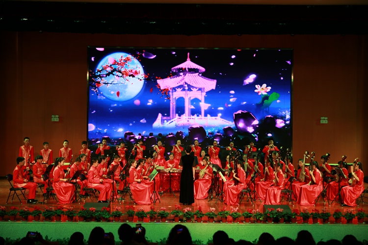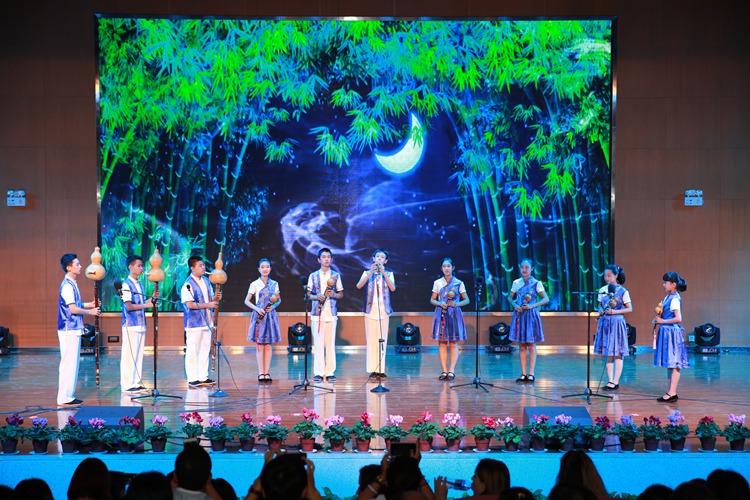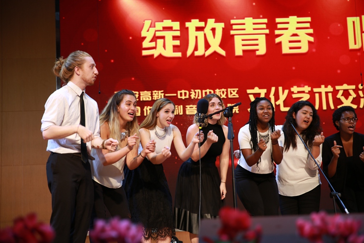 9月10日,在高新一中初中图书楼一楼的大礼堂,高新一中初中学生与美国伯克利音乐学院的Pitch Slapped“心灵之律”混声阿卡贝拉无伴奏合唱团共同演出了精彩的节目,两个小时的演出包含了交响乐、独唱、舞蹈、合唱、古筝、竹笛、民乐合奏等多种演绎形式,其中学生组成的交响乐队演出,整个流程十分讲究规范,古筝、竹笛、民乐等中国化元素也展现了学生对传统艺术的热爱和继承。