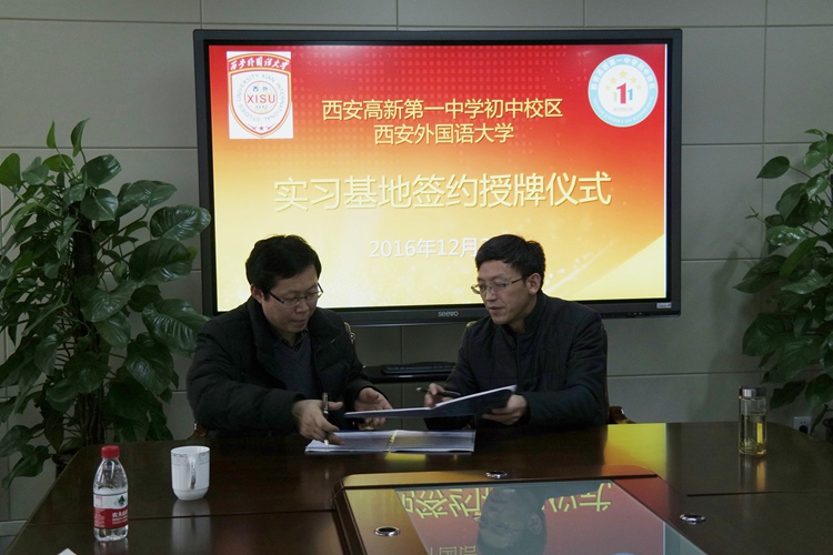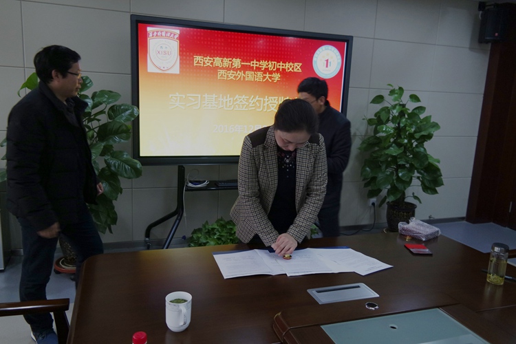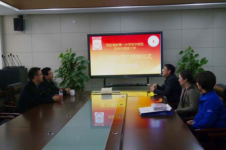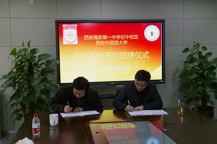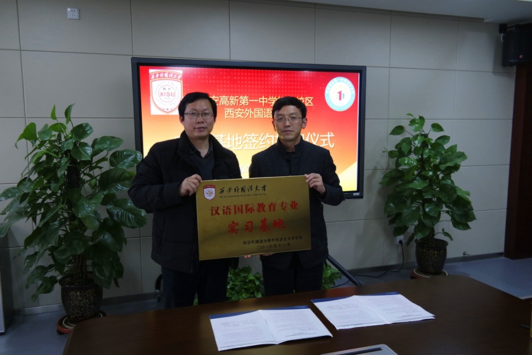 12月20日,西安外国语大学西安高新一中初中校区汉语国际教育实习基地签约暨授牌仪式在我校举行。西安外国语大学中文学院庞晨光副院长、我校常务副校长张振斌出席该仪式,并代表各自校方进行签约和授牌。实习基地即日起正式成立,我校将在明年2月迎来建立实习基地后首批西外汉国教专业的实习生。