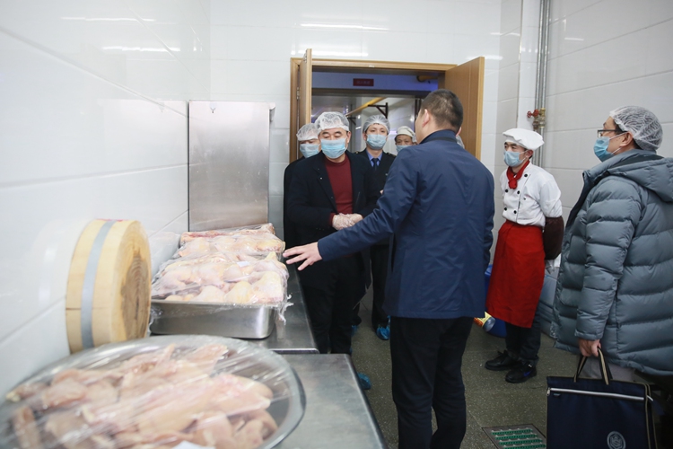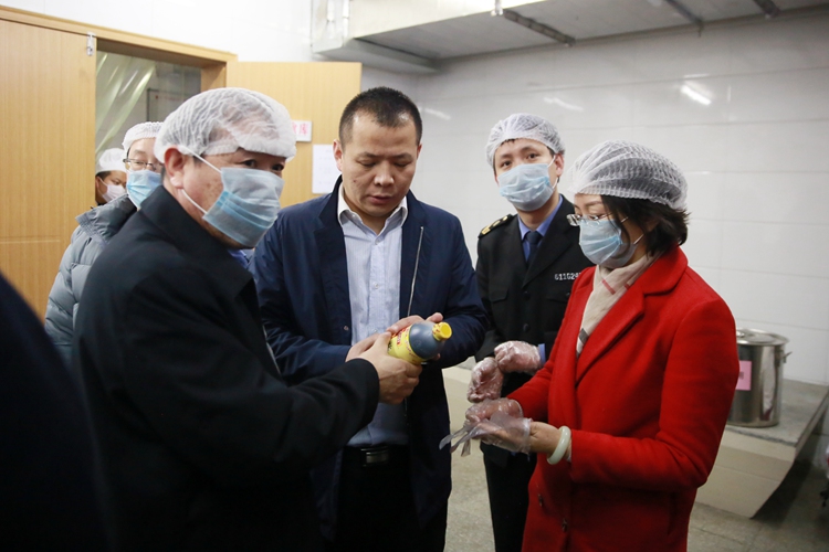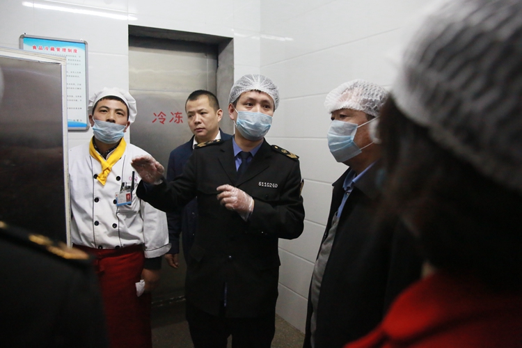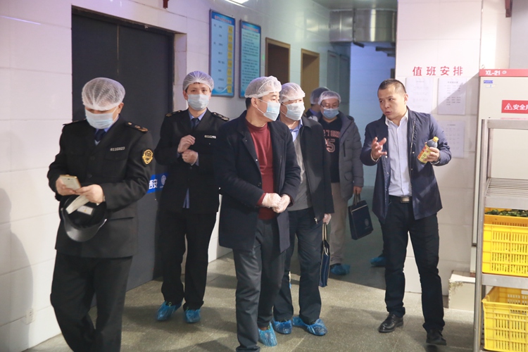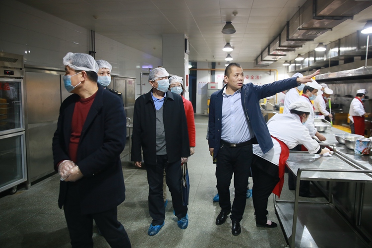 我校常务副校长张振斌、副校长刘丽君以及相关部门负责人就学校食品卫生安全情况向检查小组作了详细的介绍,之后,检查小组对学校餐饮中心就落实食品安全工作管理制度情况、食堂从业人员健康管理、食品加工、食物储存、留样、餐饮具清洗、消毒和食品防范措施情况、食堂基本条件和环境卫生等方面做了细致检查、问询。检查组对我校高度重视学校食品卫生安全工作,并在食品卫生安全管理、制度建设、硬件设施等方面做到了严谨细致给予了充分的肯定,同时也指出了一些细节性的问题希望能够改进完善。
