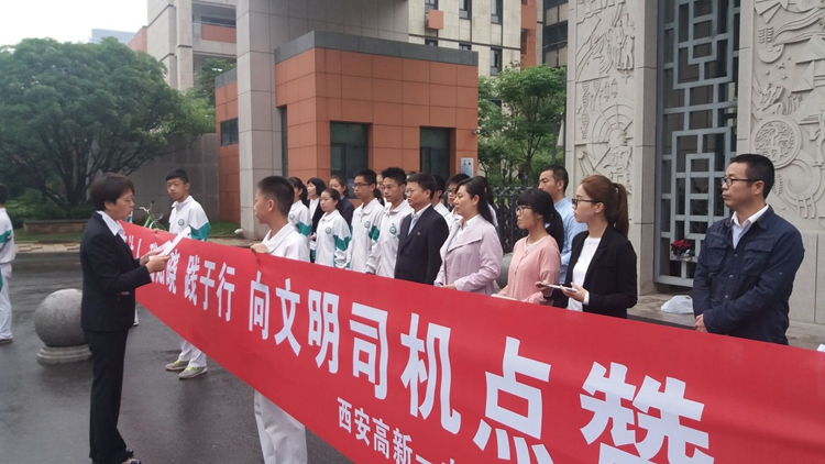 为响应落实市委指示精神,积极参与“车让人 文明西安”主题活动,按照教育主管部门的安排,高新一中初中校区党总支决定在全体师生和家长中开展“礼让斑马线”主题教育活动。号召全体教职工、学生以及广大学生家长积极参与到活动中来,通过“小手拉大手”、“大手拉大手”传递和带动身边人遵守交通法规,身体力行、从我做起,文明行车、文明走路,为营造西安文明交通环境做出积极贡献。
