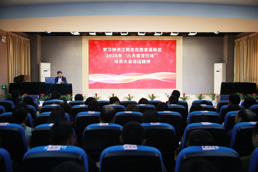 随后,全体与会人员共同学习了高新区党工委书记钟洪江在 2018年“八大攻坚行动”动员大会中的讲话精神。钟洪江书记从“在明辨形势中,抓落实、干到底;在突出重点中,抓落实、干到底;在提能增效中,抓落实、干到底”三个方面,对照分析、指明方向、提出要求。希望高新区全体员工在“八大攻坚行动”的奋力落实中,在“追赶超越、进位争先”的奋斗过程中,以“干就干最好、干就干第一”的标准,在追赶超越的路上,重整行装再出发,艰苦创业再奋斗,续写高新区的新篇章!