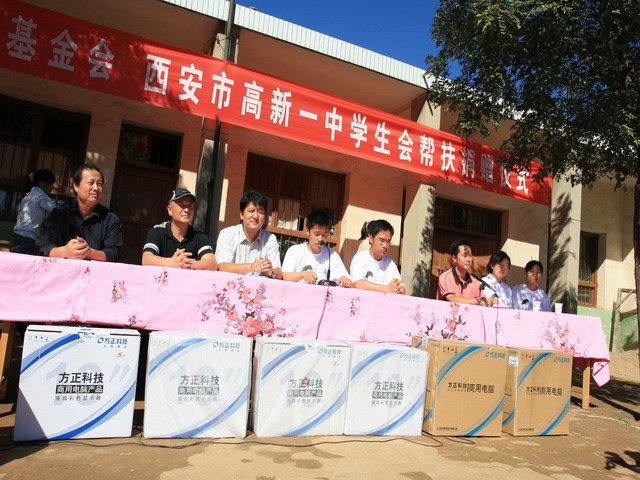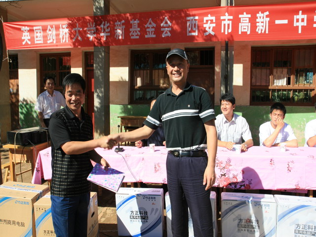 为了帮助贫困山区的孩子,高新一中优秀毕业生、现就读于英国剑桥大学的王希溪同学与她所在的剑桥大学华新基金会和高新一中学生会共同发起了“走进蓝田,扶助贫困学生”活动。在皎校长、王书记周到细致安排下,高新一中学生会积极组织了本次活动,学生会向高中的广大师生发出了捐款倡议,大家踊跃捐款,共筹集捐款一万三千余元,并购买了4台电脑赠送给金山中学,供学校教育教学使用。同时,剑桥大学华新基金会通过本次考察也和金山中学校领导达成了将长期对金山中学贫困生进行资助,并逐步改善该校办学条件的协议。