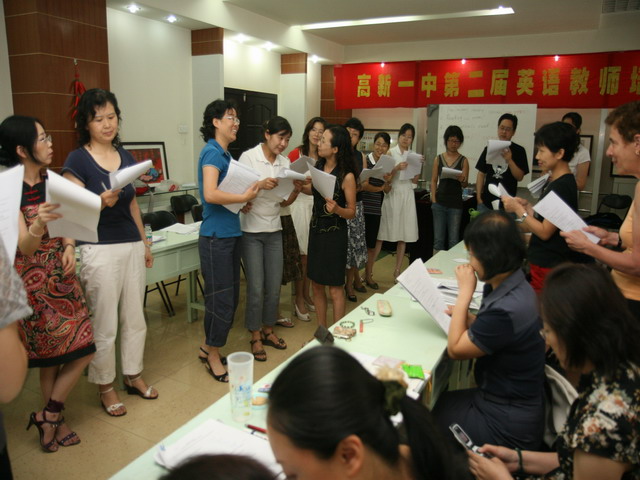 1.美国创造性教育学院-大波士顿教育家中心的专家一行十一人,从2008年7月16日至7月25日对我校英语教师进行了培训。涉及的内容有培训方针、方案与培训大纲,电视新闻中领略听力、写作、口语的教法,外语课的课堂游戏及活动,写作与思维,听力与阅读课堂游戏,时事与诗歌,流行文化与情景喜剧,文学阅读与时事阅读教学,考试、总结、结业等,体现了西方先进的教学理念及教学方式。深受全体英语教师的欢迎,培训效果显著。