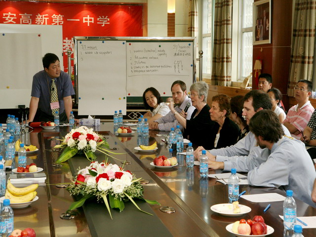 2.美国大波士顿教育家中心的专家教授还从2008年的7月16日至20日对我校全体教师进行了培训,培训的内容涉及到美国的教育体制和教学实践,美国高中的教学结构及管理、高中英语写作、高中物理教学、高中数学教学、初中生物教学、初中物理教学、初中英语阅读教学、高中历史教学等。培训形式别开生面,几天来,通过培训,通过中美文化教育理念的相互碰撞,老师们在教育教学的思想和方法上得到了明显的提高,让更多的教师分享和体验了优质的教育资源。