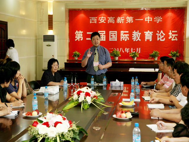 3.2008年8月21日,来自美国、英国、新加坡、赞比亚等国的教育专家在我校高中部大会议室举行了我校第二届国际教育论坛,论坛的主题为“中国新课程改革与国际接轨”,论坛上,我校部分英语教师和各国教育专家进行了广泛的讨论,碰撞出了许多对教育教学具有指导意义的思想火花。在我校暑期教师培训中引起了极大的反响,效果显著。