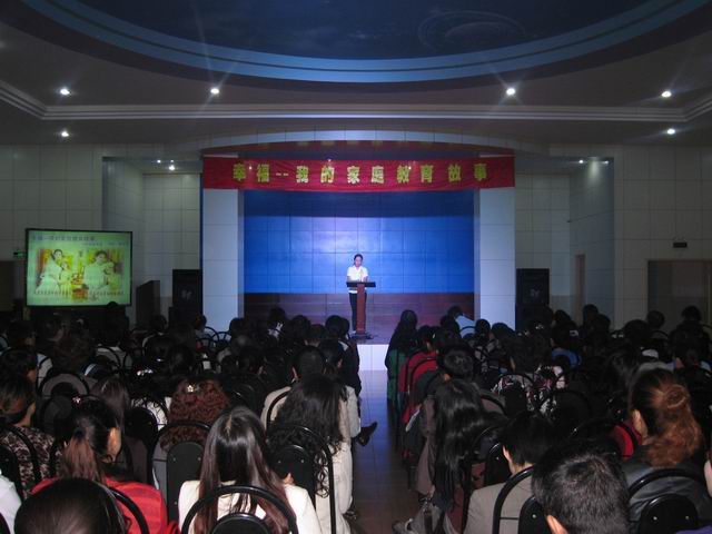 这次活动中,三位家长代表分别以《幸福的味道》、《用心品味,幸福无处不在》及《我是你生活中的背景音乐,会让你永远沉浸在幸福的曲调里 》为题生动形象地讲述了自己的家庭教育故事,使在座的家长们深受教育和感染,分享了他们在家庭教育中所获得的幸福。接着,该校骨干教师代表刘淑琴和燕嘉惠分别以《一切有价值的教育都是幸福的》和《幸福,从会爱孩子做起》为题,深入浅出地讲述了自己在从事教育工作中如何感受幸福,品味幸福。最后,陕西省妇联家庭教育研究会讲师团成员之一的王志光老师以别开生面的视频等方式,生动地讲述了如何品读幸福,感悟幸福,并阐释了幸福的含义等等。