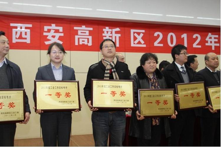 下图为我校工会主席吴永胜领取2011年度工会目标考核一等奖奖牌