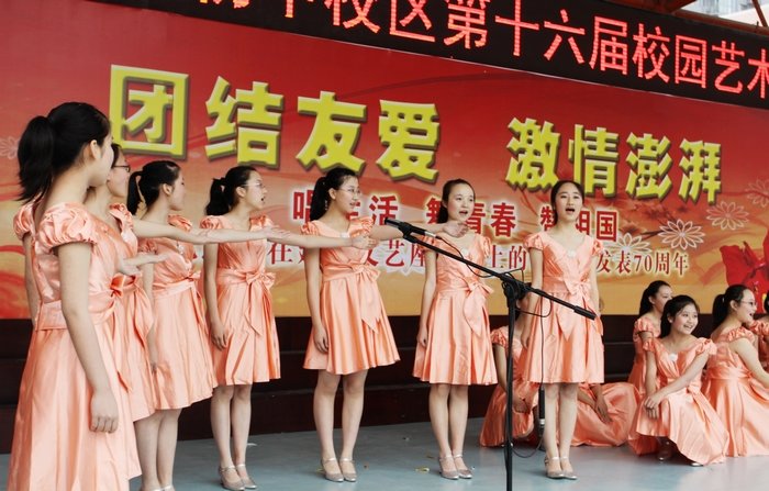 学生的德育工作作为学生思想教育的根本,我校近年来不断创新校园艺术节新形式,使广大学生在形式多样的校园生活中不断提升自我。在这里,德育没有停留在豪言壮语上,没有止步于轰轰烈烈的活动中。它如空气与水浸润在每位学生的课堂上、生活中、家庭里、校园内。