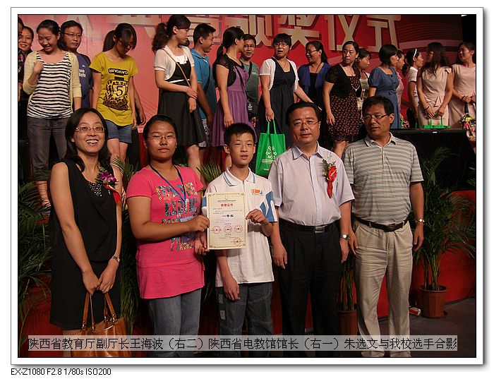 在比赛现场,省教育厅副厅长王海波高兴地对我校学生说,“高新一中的孩子们,你们为陕西争了光”,王厅长还鼓励同学们努力发扬创新精神,创造出更好的成绩。