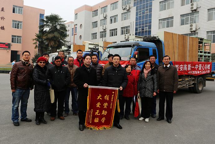 本次捐赠是通过陕西中洲知青帮助基金会找到这三所贫困地区学校的。贫困学校的代表蓝田县厚镇宋寨村委会主任、商洛市人事局局长以及陕西中洲知青帮助基金会的工作人员等一行10余人给我校送来了一面锦旗,盛赞我校“捐资助学,大爱无疆”。并对我校的善举一再表示感谢。