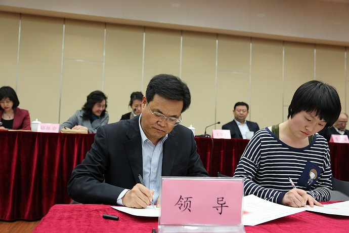 党工委办主任杨莉和基层团组织代表签订目标责任书