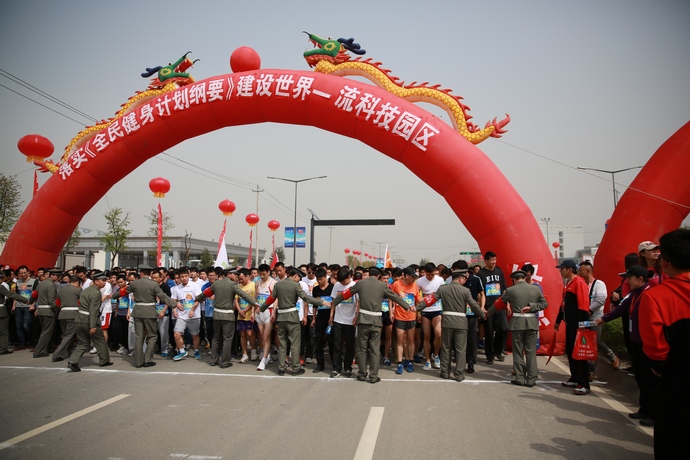 随着管委会副主任杨明瑞宣布运动会开幕,男子组越野赛随即开始。来自高新区企事业单位和社区居民2000多名选手冲出起跑线。男子组的比赛历来都是重头戏。