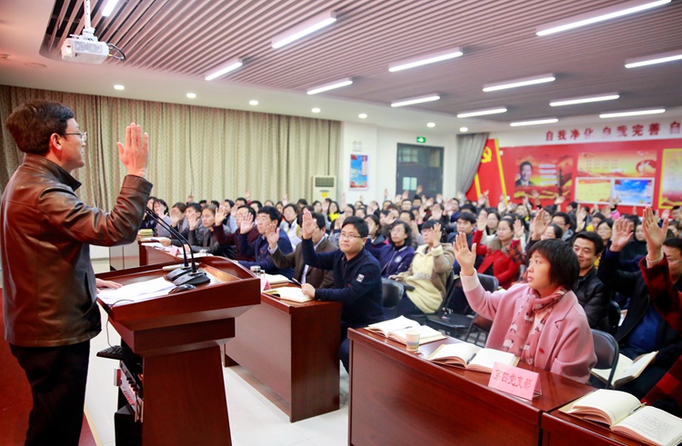 在会上,王凤进书记还就本学期党总支工作做了规划安排。他在讲话中强调了学校在今后的工作中要加强党建工作,以党建促发展,以党建促团结,以党建促进学校教育教学工作再上新台阶。王凤进书记还要求每一位党员要努力学习,提高自己的思想水平和业务能力;发扬正气,摒除恶习,传承优良的中国传统文化;树立正确的意识,严格要求自己。尤其是要树立政治意识、大局意识、核心意识和看齐意识,在思想上和行动上与以习近平同志为核心的党中央保持高度一致,认真学习十八大和十八届三中、四中、五中和六中全会精神。深入开展“两学一做”学习教育,人人争做优秀党员,形成比学赶帮创先争优的氛围,打造学校风清气正的政治生态。