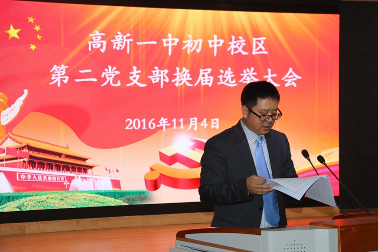 会议由学校工会主席、党办主任吴永胜同志主持。首先,大会主持人向全体党员报告党员出席情况,大会在《国歌》声中拉开了序幕。接着,按照《中共西安高新一中初中校区党总支各党支部委员换届选举议程》选举了新一届党支部委员。最后,张小英、李志龙、祝航舟、孙雪娇、屠世青五人当选。