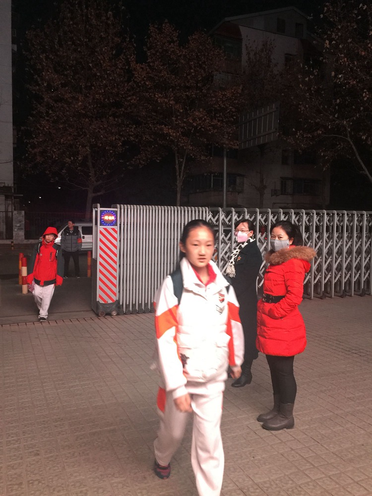 党员在校门口迎接学生的到来