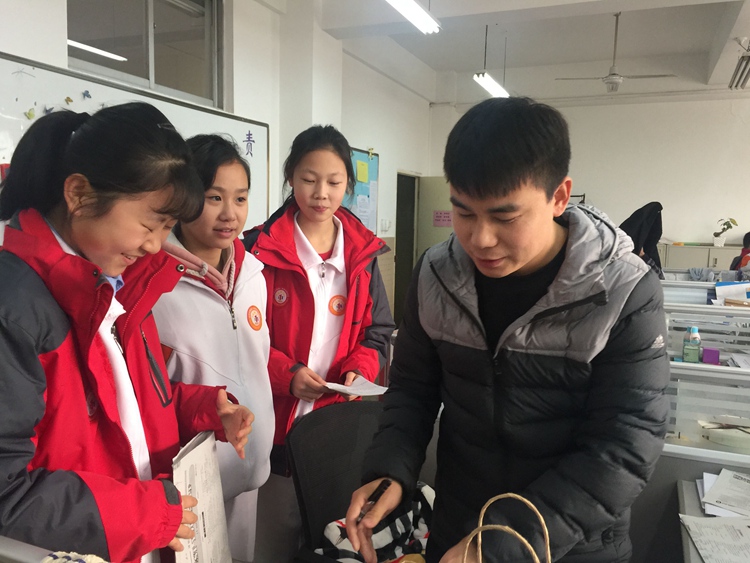 青年党员肖老师在辅导学生中