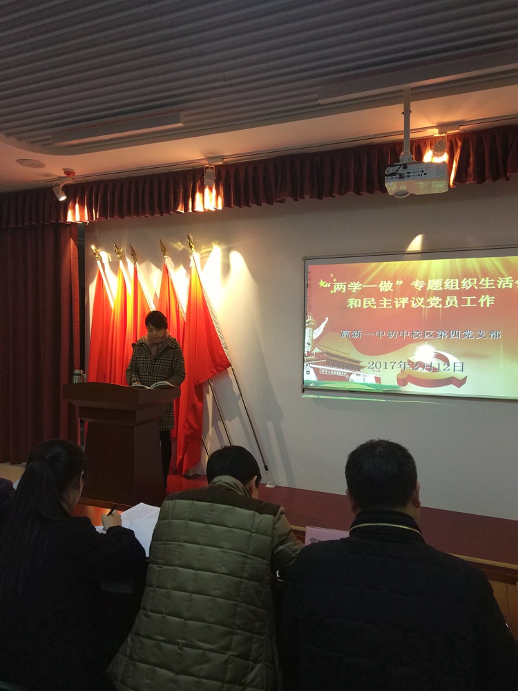 2017年2月12日下午15点30分,高新一中初中校区党总支第四党支部在1#楼2层党员活动室召开了“两学一做”专题民主生活会,开展民主评议党员工作。