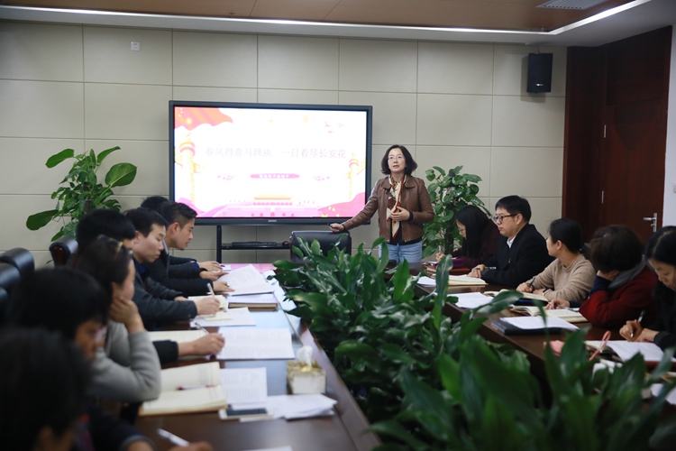 3月15日,春风拂面,西安高新第一中学初中校区党总支第一副书记、第五党支部书记刘丽君同志,为第五支部全体党员作了题为“春风得意马蹄疾一日看尽长安花”的专题党课。这次党课从历史的高度和时代发展的角度,让我们明白了作为高新一中初中校区党员的重大责任和历史使命----“跳出城墙看西安站上秦岭谋发展”。