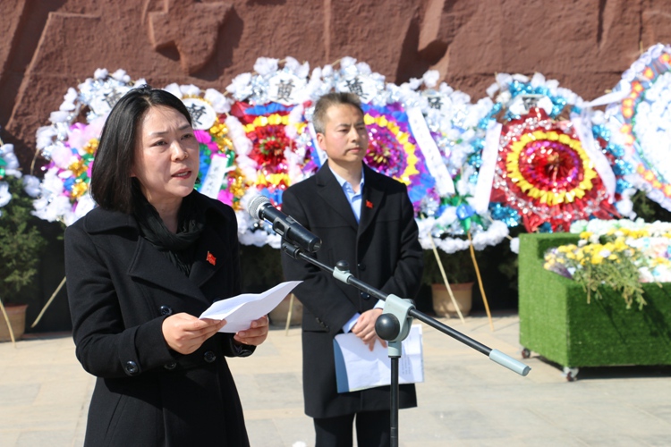 张小英同志在纪念碑前发表讲话