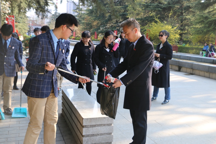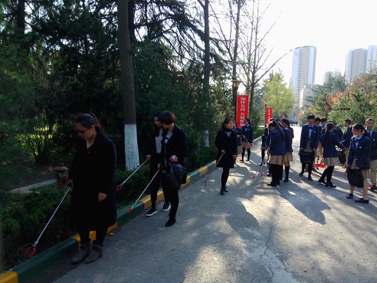 祭扫活动结束后,第二党支部还将此次活动与当前开展的“垃圾不落地,西安更美丽”活动紧密结合,在烈士陵园园区内,队伍分成三个小分队,由党员同志带领团员一起捡拾垃圾、烟头,为大家创造一个更好的祭扫环境。同志们拿着簸箕、扫帚、夹子、垃圾袋等清扫工具,清扫散落在各处的纸片、烟头、落叶等垃圾,用实际行动倡导清明期间环保扫墓,让烈士陵园有春花绿草,苍翠青松,更有干净、整洁的环境。