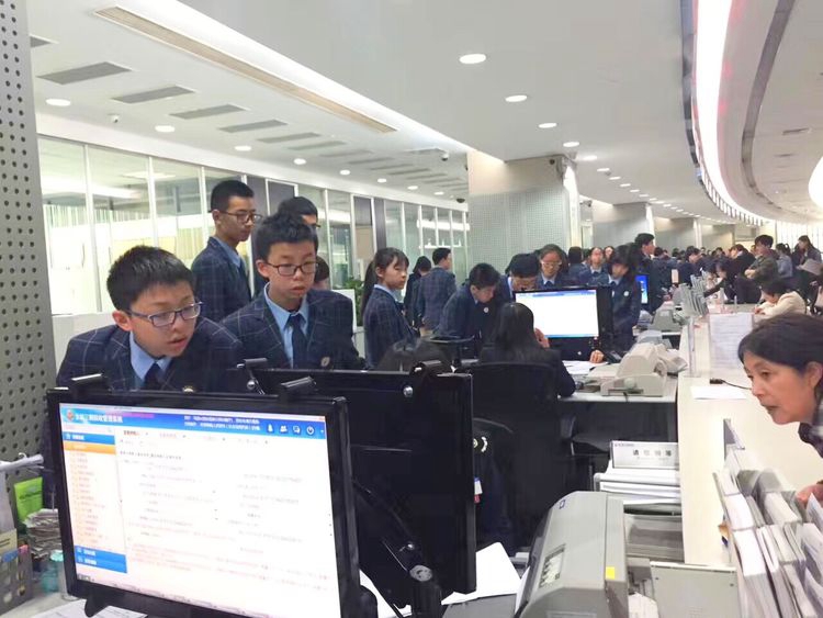师生们来到西安高新区政务服务中心,首先办税大厅杜主任致欢迎词,她说:"税收关系着我们的衣食住行,特别是公共服务方面都离不开税收。可能你们对税收理解不够深刻,希望通过今天的活动让大家对税收有一个全新的认识,让税收在你们心灵深处扎根发芽,同时也发挥‘教育学生、带动家庭、辐射社会’的良好税收宣传作用。"
