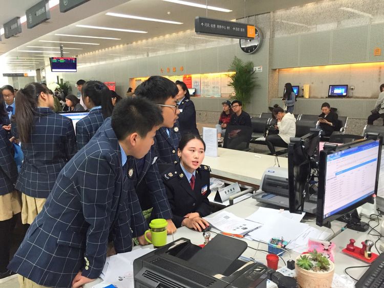 接下来工作人员为同学们讲解了税法知识,带领大家参观了高新地税局荣誉展室,最后同学们来到政务大厅,听取现场办公人员的热情讲解,并亲自操作和体验为纳税人办理纳税申报等业务。地税局办公室刘主任对本次活动进行了周密的安排并全程陪同,热情、耐心地回答同学们的各种问题与困惑。