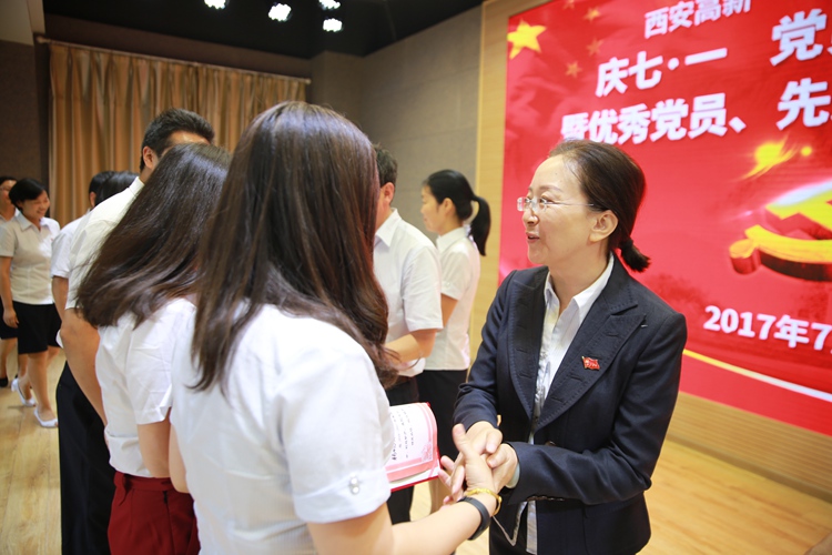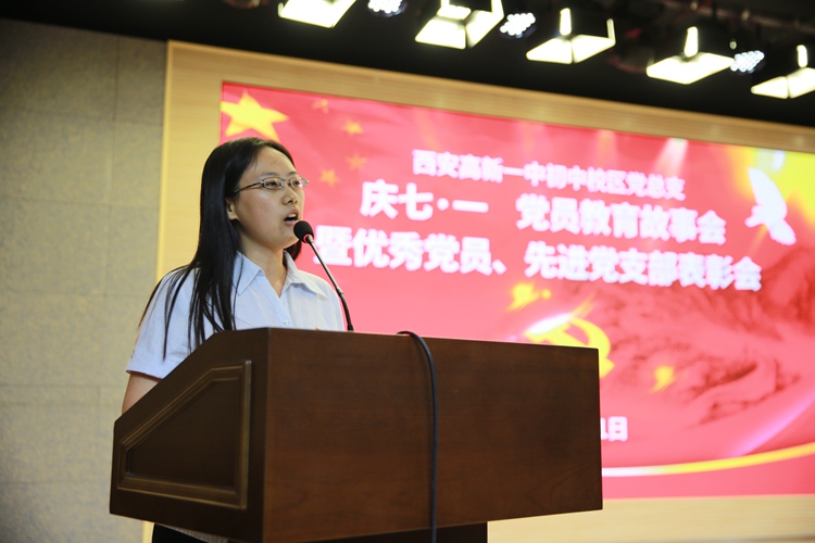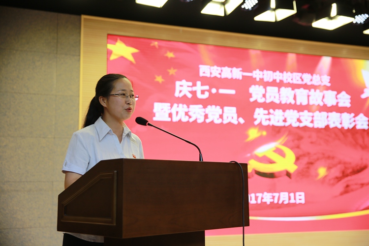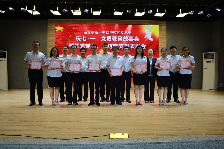 全体党员观看了教育影片《红色气质》。随后,5名优秀共产党员代表为我们分享了他们感人至深的教育故事。年轻的班主任宁青老师讲述了如何用耐心与恒心帮助学生解决与父母之间的隔阂与矛盾,让我们看到了一名年轻党员对待教育事业的执着追求;心理老师“知心姐姐”李岚用朴实的话语描绘着她与学生内心与情感的点点滴滴,让我们明白疏导解决孩子的“心霾”是教师光荣而神圣的责任;语文老师陈莎讲述了“思远”同学的三年来的成长与变化,她是如何用心呵护孩子“向善向上”愿望,让我们深深体会到教师职业的平凡和伟大;胡清元主任与大家分享了工作中奉行的“第一时间”与“第一责任”。让所有人深深体会到了“爱岗敬业、团结协作、乐于奉献、敢于担当、勤于思考、勇于创新”高新一中初中校区教师的“工匠精神”;杨明格老师讲述着自己十几年来的成长变化,让全体党员感受着她用真诚的爱去灌溉,用灵动的智慧去培养学生,诠释了人民教师默默奉献的精神内涵。在五人分享故事的过程中,我校第二党支部党员同志以及刘百锁同志为大家带来了诗与歌表演《祖国万岁》和独唱《把一切献给党》,为党的96岁生日送上了真挚的祝福。