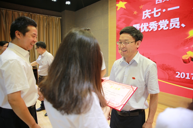 党总支书记王凤进同志为优秀党员颁奖