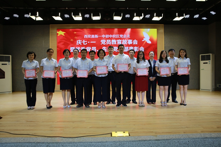 为纪念中国共产党建党96周年,深入推进“两学一做”学习教育,激励广大党员进一步发挥先锋模范作用,根据学校党总支的统一部署,7月1日晚上19::00高新一中初中校区党总支庆“七一”党员教育故事会暨优秀党员、先进党支部表彰会在校本部报告厅隆重举行,全体党员150余人参加大会。