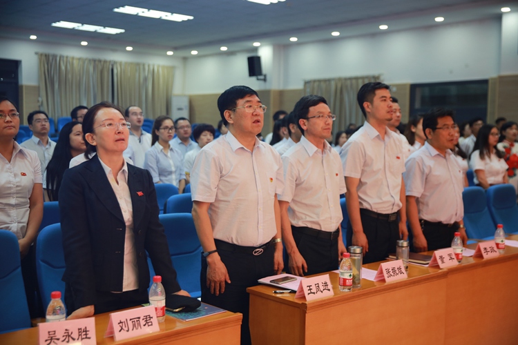 在雄壮的国歌声中,党员大会正式开幕。大会由党总支组织委员吴永胜同志主持。首先,我校党总支第一副书记刘丽君同志宣读表彰决定:第一党支部、第二党支部被评为“先进党支部”。刘曼、杨晓皎、宁青、马文杰、张小英、许永升、侯蓁、杨明格、单静、王海瑛、陈莎、王亚琼、胡清元、孙稷、肖舟、李岚、石德宇等17名同志被评为“优秀共产党员”。学校党总支委员为获奖的集体和个人进行了隆重颁奖。