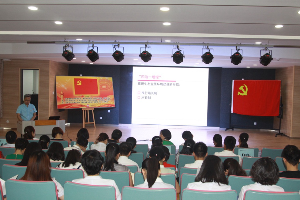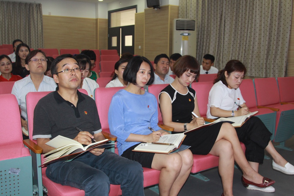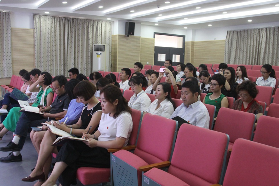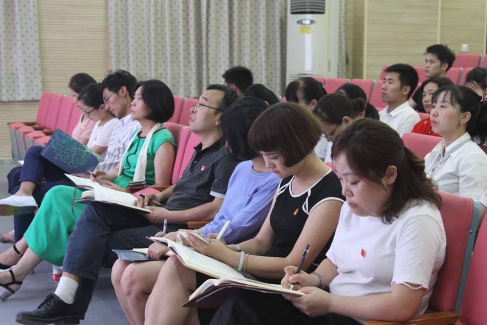 2017年6月28日,高新一中初中校区党总支第二党支部召开了以"推进追赶超越,建设生态宜居环境"为主题的党课。支部副书记李志龙同志带领全体党员上党课,解读了我们需打赢的三场攻坚战,同时结合实际教育教学工作指出如何通过立足岗位,让高新教育扬起来。全体党员认真聆听,将党课内容内化于心,外化于行。