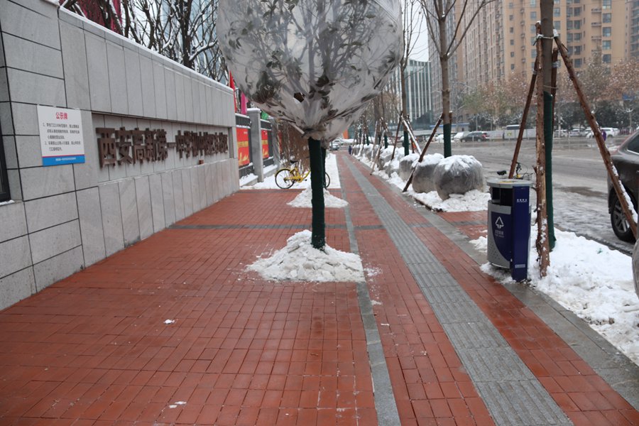 中午12:30,全体党员、青年教师和二十多名少先队队员们手持工具聚集校门外。大家不畏瑟瑟的寒风,顾不得飞溅的冰碴泥水打湿衣裳,顾不得冻得僵冷的手指,顾不得敲击板结的积冰震得酸麻的手臂,分工合作:老师在前面撒盐、撬冰、铲雪,学生们在后面用簸箕、扫帚清理,大家齐上手,整整一个小时,将学校南门外木塔寨A路至太白南路校东门外四百余米的人行道及自行车道上的积雪积冰全部铲除干净。为师生和过往的行人开辟了一条安全畅通的道路。大家高亢的热情,温暖的行动,让途经的路人们纷纷为这“扫雪大军”点赞!参与扫雪的老师同学们听在耳中,暖在心里。