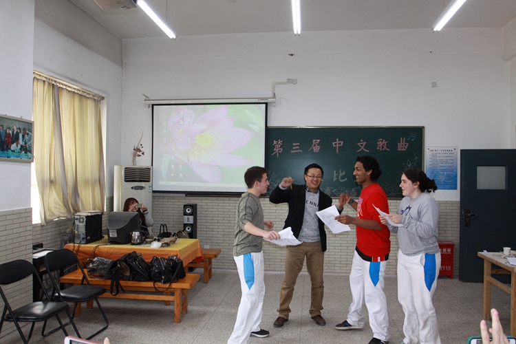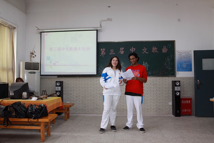 本次中文歌曲比赛的意义旨在丰富我校美国留学生的课堂教学活动和课余生活,以中文歌曲比赛为形式,提高学生的中文语言实践能力,进而激发他们对中文的学习兴趣和热情。