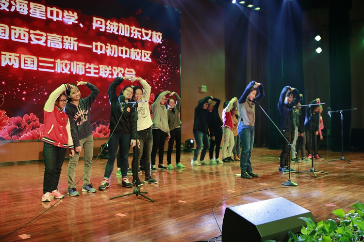 11月3日,我校为新加坡海星中学、丹绒加东女校师生,隆重举行了一场名为“两国三校联欢会”的活动。联欢会上,四校师生共同用极具特色的器乐演奏、美轮美奂的舞蹈、欢快高昂的歌声,在舞台上展现自己的同时,也为台下的四校师生带来了欢乐和轻松,表达了三国师生之间深厚的友谊。